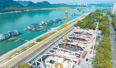 湖北省宜昌市,“一江两岸”污水厂网新建、改扩建项目大公桥调蓄池加紧施工。