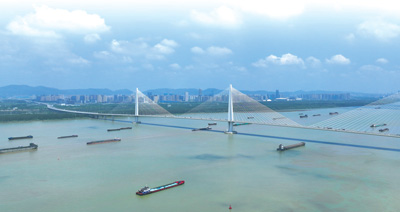 素有“黄金水道”之称的长江南京段,船只往来穿梭,呈现一派繁忙景象。
