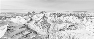 图为在海拔8400米左右高空拍摄的珠穆朗玛峰和喜马拉雅山脉群山。 新华社记者 孙非摄