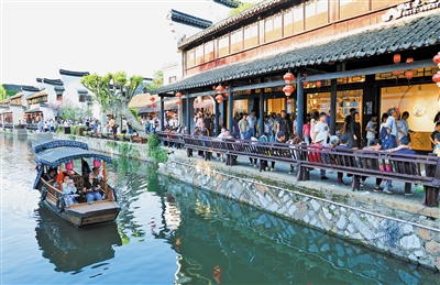 浙江省湖州市,国家5A级旅游景区南浔古镇内游人如织。当地持续打造“古镇+”品牌,拓展旅游市场,带动旅游消费。